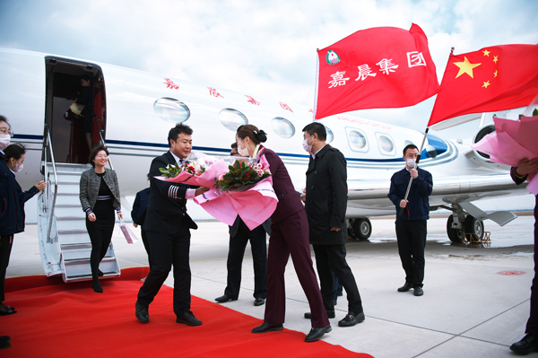 接機儀式上,嘉晨集團董事長孫壽寬致辭。嘉晨集團是我市本土成長起來的全國知名500強企業(yè)。創(chuàng)新能力強,發(fā)展?jié)摿Υ?,產(chǎn)品質(zhì)量好,近年來,無論鐵礦石、原煤等原材料的進口,還是“超純鎂砂”高科技產(chǎn)品的出口,僅每年國際貿(mào)易所產(chǎn)生的經(jīng)濟價值已遠遠超越飛機價值本身。孫壽寬表示,在社會需要的特殊時期,作為本地民營企業(yè),飛機也可以第一時間用于支持火線馳援等,為全社會提供更多力所能及的幫助。